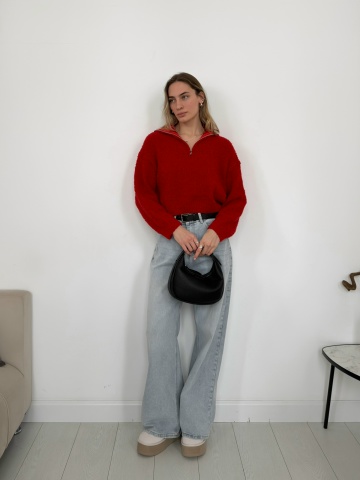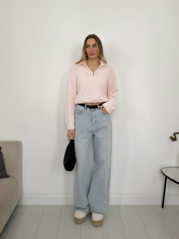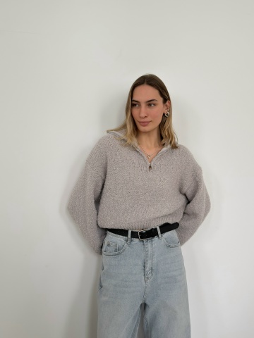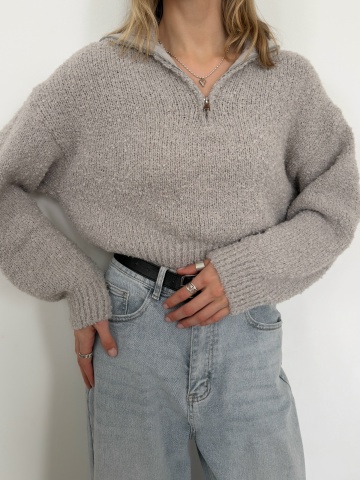 Главная / Джемперы, свитеры, водолазки / Джемпер Korea F1090 поло на молнии барашек