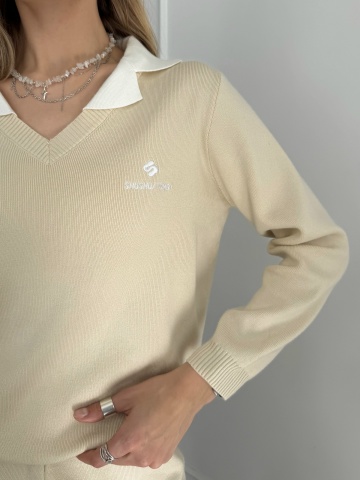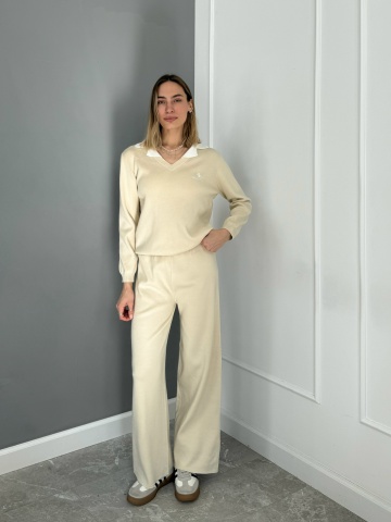 Костюм трикотаж 25285 белый ворот джемпер+кюлоты