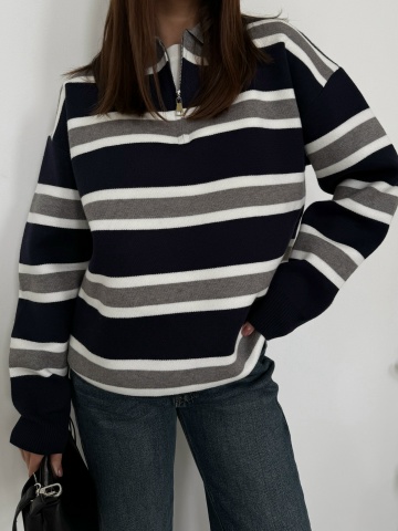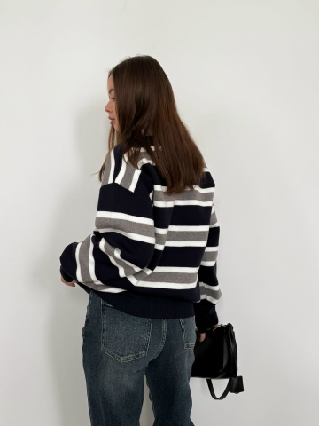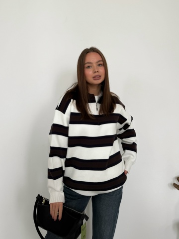 Главная / Джемперы, свитеры, водолазки / Джемпер 794 поло на замке полоска