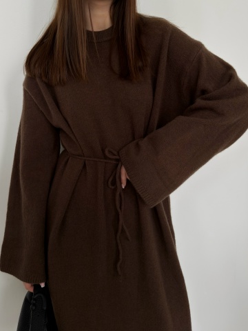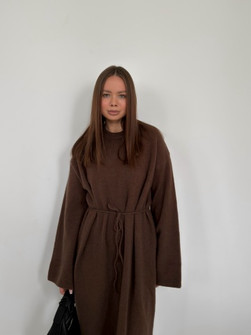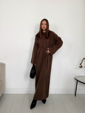 Платье макси трикотаж пояс-веревочка