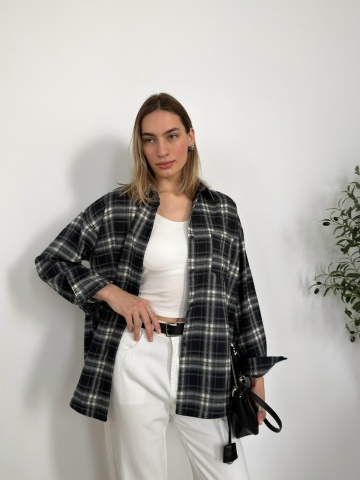 Рубашка W2122 в клетку+узор кармашек на груди