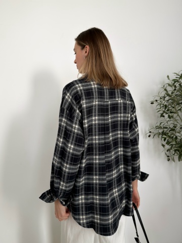 Главная / Рубашки, блузки / Рубашка W2122 в клетку+узор кармашек на груди