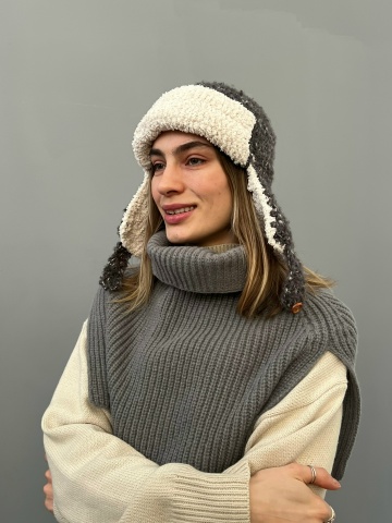 Главная / Головные уборы / Шапка ушанка крупная вязка двуцветная