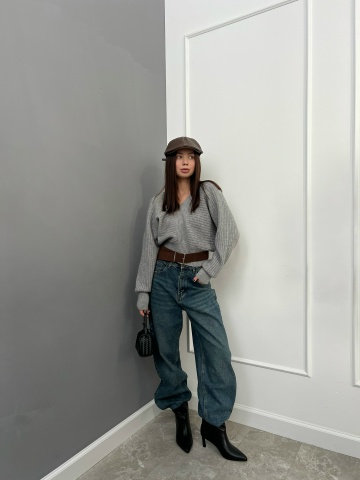 Джемпер WG WE W8072 v вырез+ремень